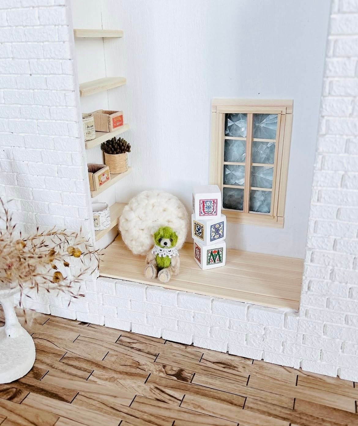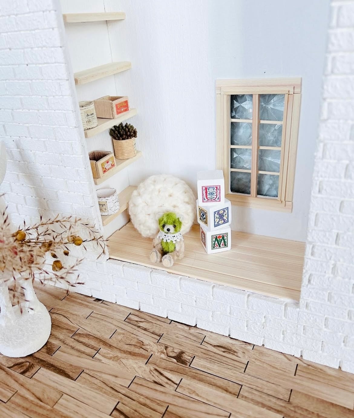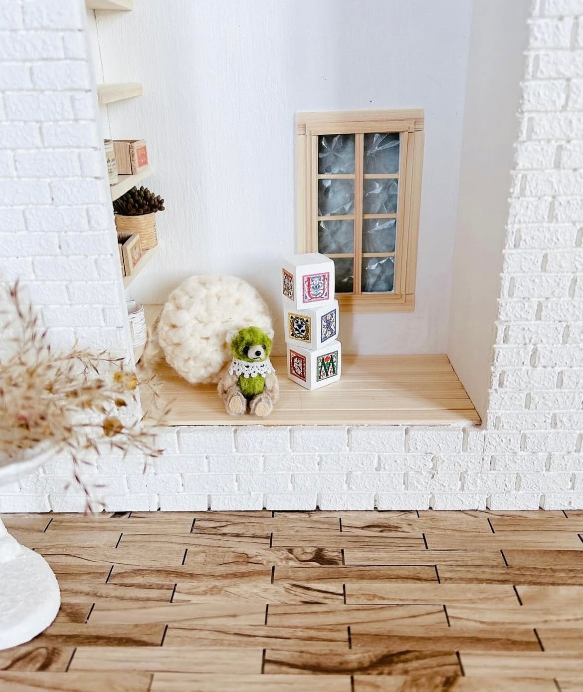 プチブライスベッドフロアがある背景ボードナチュラルウッド