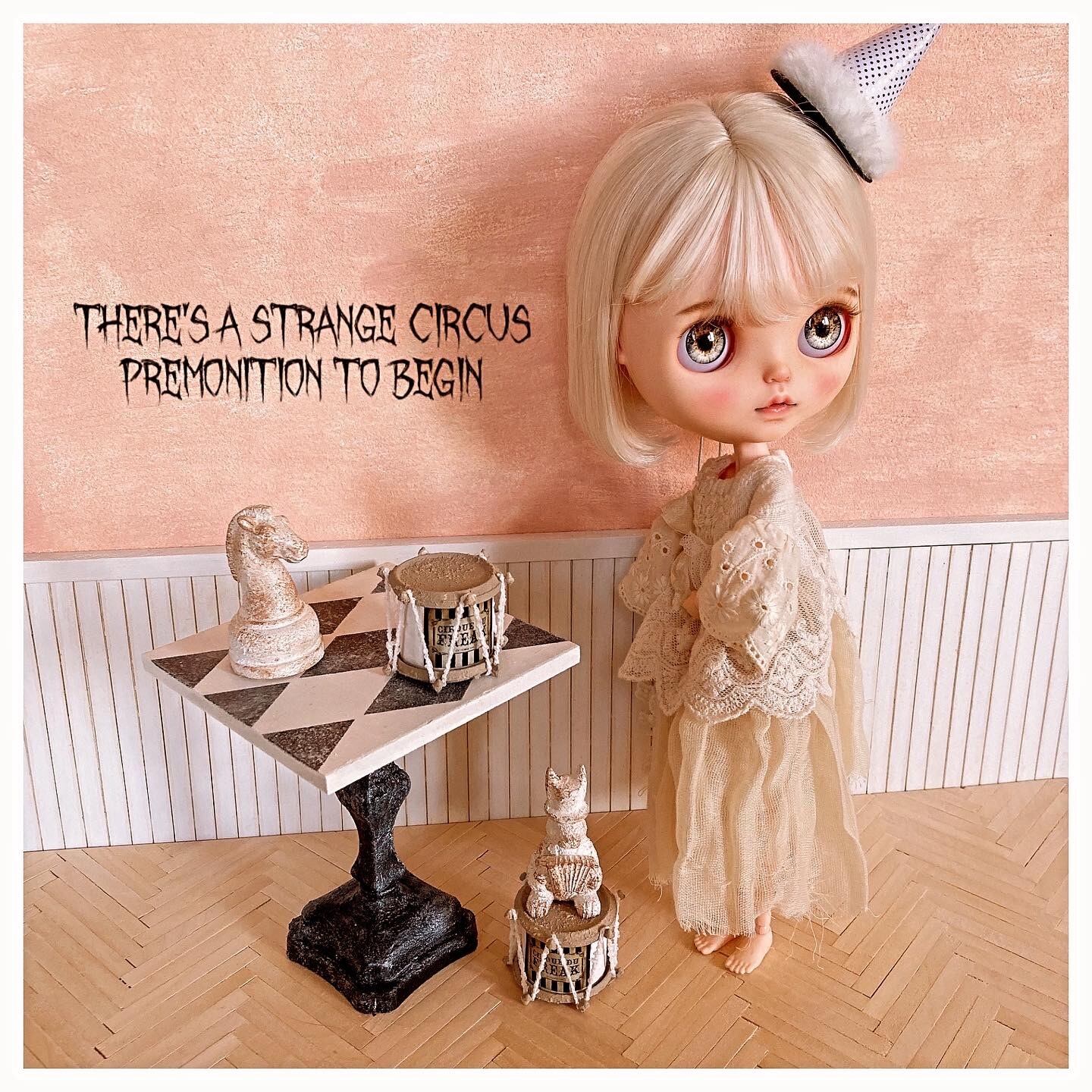 CIRCUSダイヤ柄テーブル ミニチュア ドールハウス 背景ボード 壁 床 ブライス リカちゃん 1/6 家具 オビツ 棚 机 ドール ドール家具 カスタムブライス ハンドメイド シャビーシック 小物
